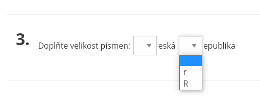 Doplňte velikost písmen: :v1a eská :v1b epublika :v1a="Č" ok :v2a="č" :v1b="R" :v2b="r" ok