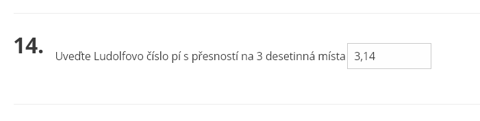 Zápis „3.141..3.142“ na hodnotícím řádku znamená, že jako správná odpověď se vyhodnotí jakékoli číslo, které patří do intervalu 3,141–3,142. Dolní a horní hranice intervalu se od sebe odděluje dvojicí teček „..“.