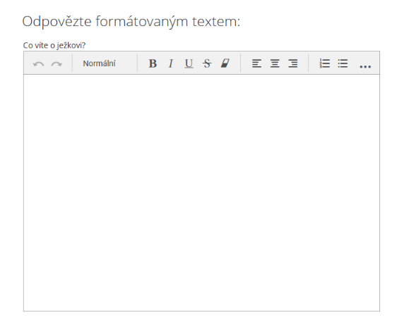- Textová oblast s formátovaným textem – Typ otázky s textovou oblastí pro vepsání textu, kde je hodnoceno i použité formátování (např. u citací). Textová oblast s formátovaným textem používá manipulační prvek