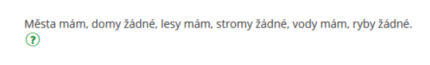 (Manipulační prvky oddělené mezerou od začátku řádku označují nabízené možnosti v zadávací části, prvky začínající dvojtečkou na začátku řádku označují vyznačení správné odpovědi a zpětnou vazbu v hodnotící části.)