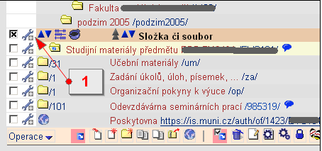 - Na řádku se souborem kliknete vlevo na symbol montážního klíče (Nástroje).