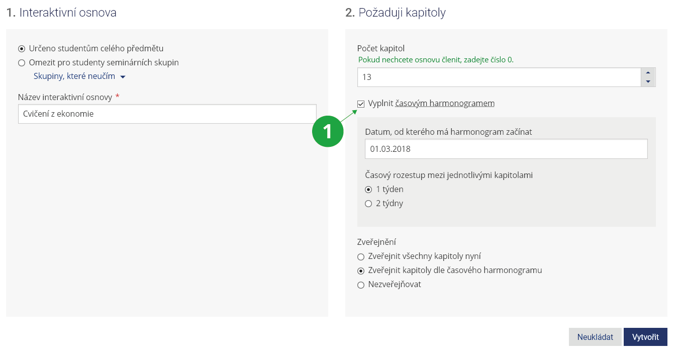 1 Volba „Vyplnit časovým harmonogramem“ při zakládání osnovy.