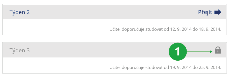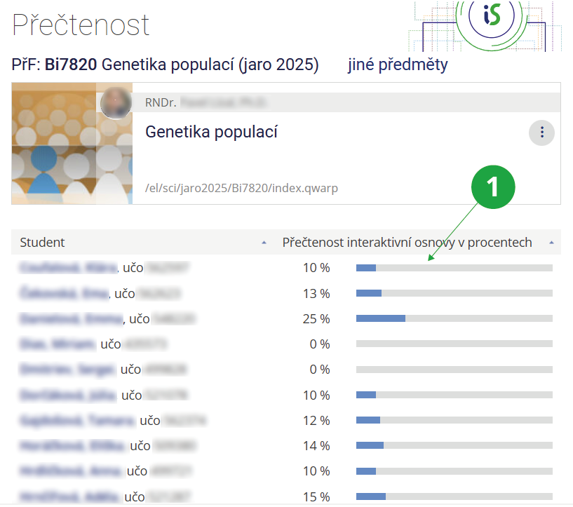 1 Funkce „Přečtenost“ ukazuje, jak daleko jsou studenti v procházení interaktivní osnovy.