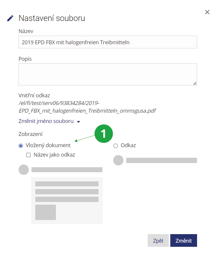 1 U PDF souborů je možné nastavit vložené zobrazení přímo v osnově. Studenti si mohou soubor zobrazit, nikoliv stáhnout.