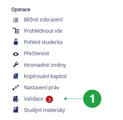 1 Pokud se v interaktivní osnově objeví problémy, zobrazí se indikace u operace „Validace“.