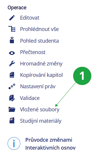 Do této složky lze vstoupit také přímo z interaktivní osnovy, a to přes možnost „Vložené soubory“, která se nachází ve sloupci „Operace“.