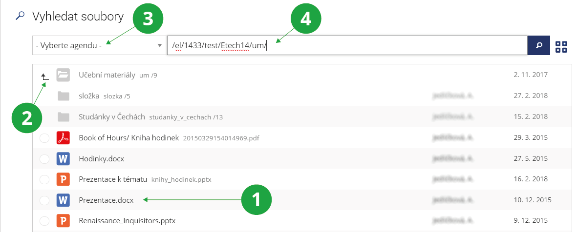1 Po najetí na ikonu interaktivní osnovy ve správci souborů se zobrazí vnořená složka, která je vytvořená přímo pro danou osnovu. Zde jsou uloženy soubory, které jsou do osnovy přetahovány či přímo nahrávány.