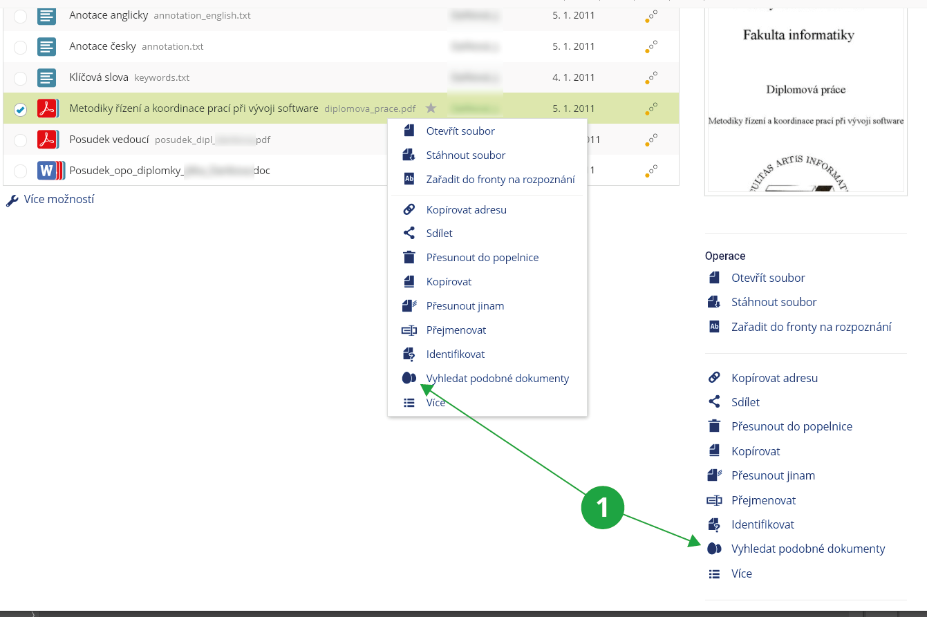 1 Operace „Vyhledat podobné dokumenty“.