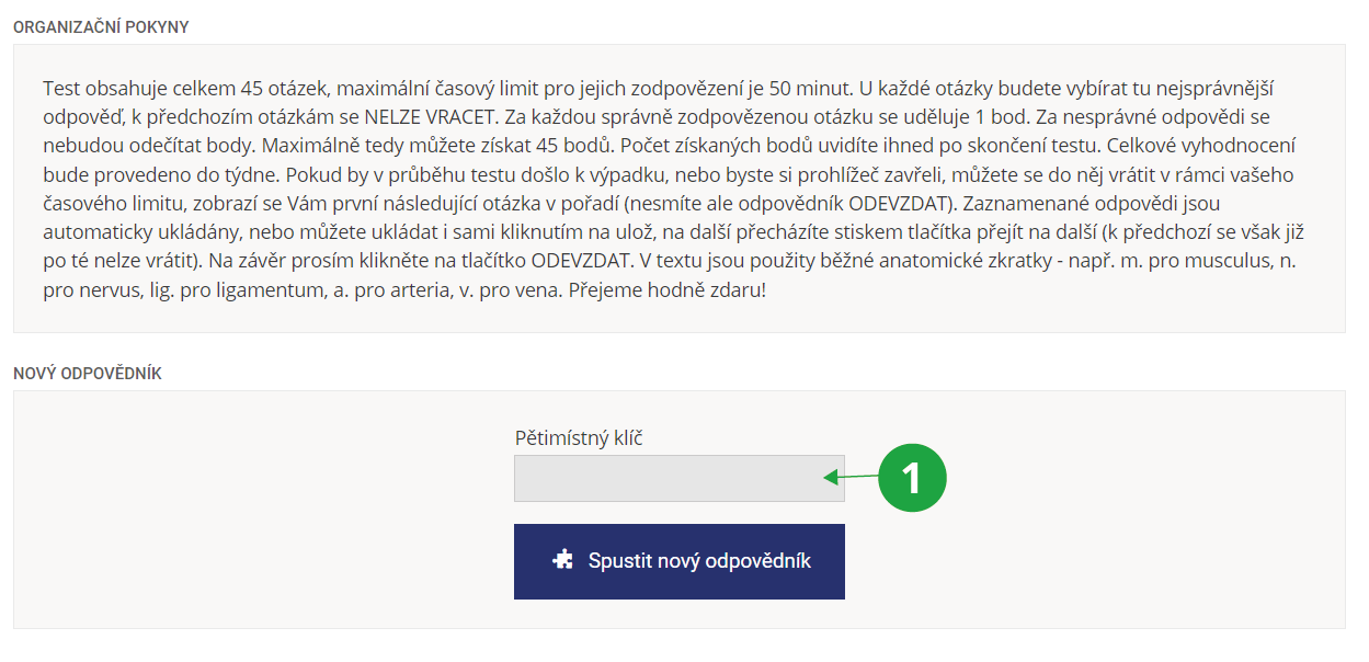 Studenti mají kolonku pro vložení klíče u tlačítka „Spustit nový odpovědník“.
