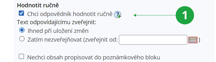 Ano, můžete. Kromě automatického hodnocení (tedy takového, kdy se odpovědi studenta vyhodnocují dle předem zadaných bodů) existuje i možnost tzv. ručního hodnocení odpovědí. Tento režim hodnocení je třeba nejprve zapnout v popisu odpovědníku.