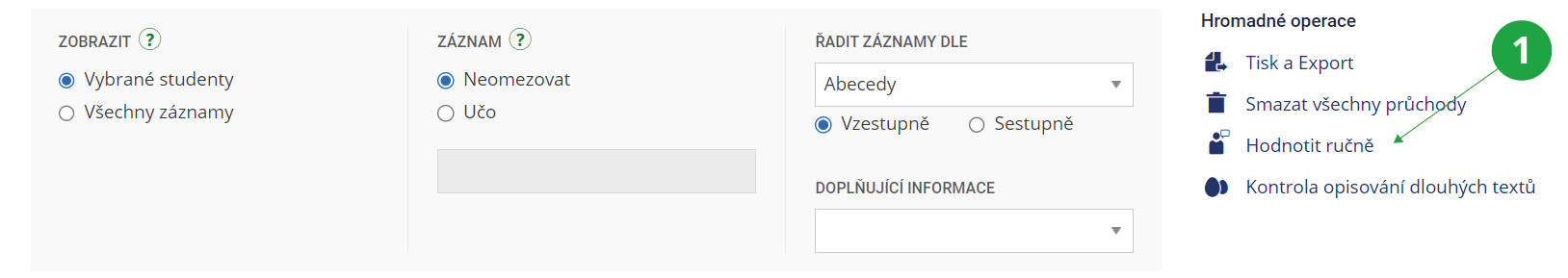 1 Nabídka se rozbalí po zakliknutí ručního hodnocení.