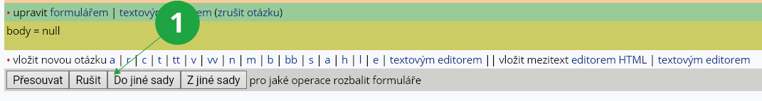 tlačítko „Do jiné sady“ a pomocí zaškrtávátek označíte otázky, které chcete přesunout. Dále zvolte, jestli chcete otázky pouze