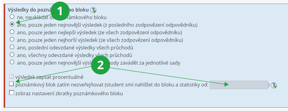 2 Pokud vyučující nechce, aby měli studenti bodový výsledek dostupný ihned po vyhodnocení naskenovaných písemek, zaškrtne tuto možnost. Případně je možné vyplnit datum, od kdy se studentům body zveřejní.