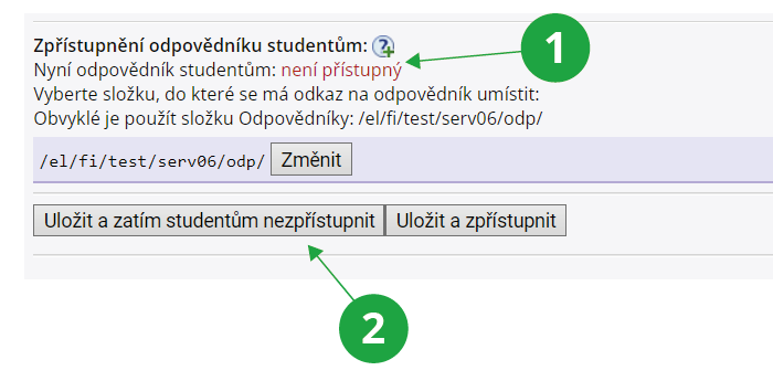 2Popis odpovědníku pro skenovací testy se proto ukládá volbou „Uložit a zatím studentům nezpřístupnit“.