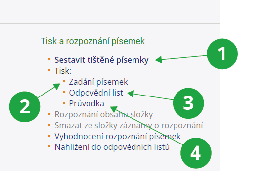 - Písemky se rozpoznají a zkontrolují (viz Vyhodnocení rozpoznání písemek)
