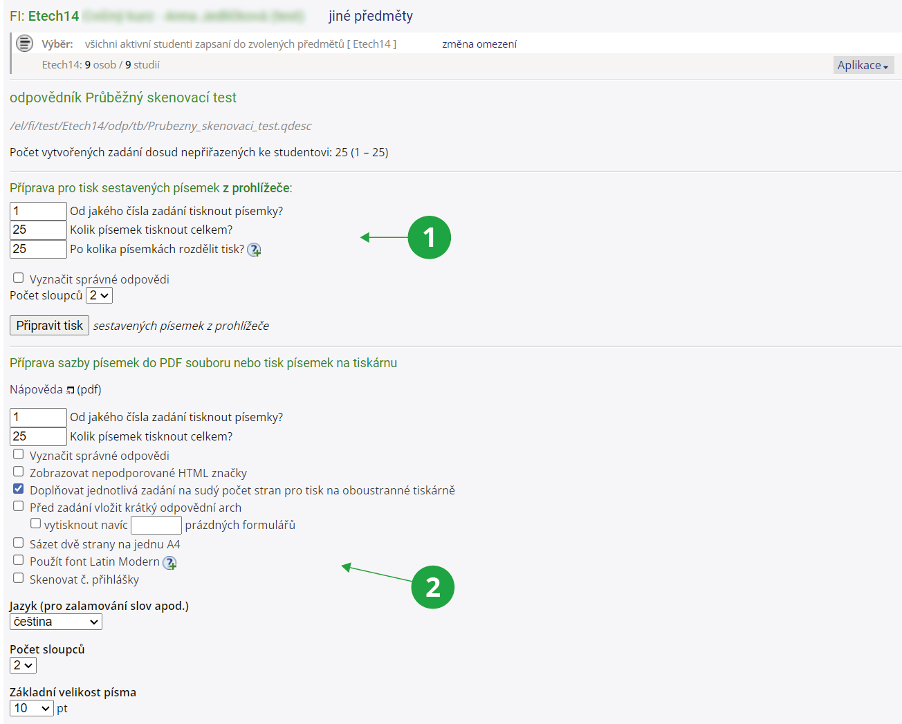 2 Příprava sazby písemek do PDF souboru nebo tisk písemek přímo na tiskárnu.