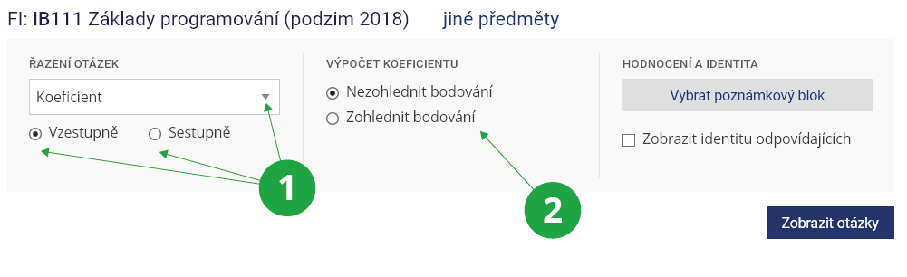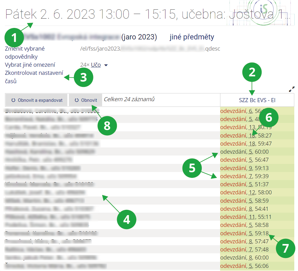 1 Vyučující může volit, jestli uvidí jen záznamy omezené skupiny studentů (například jeho seminární skupina apod.), nebo budou zobrazeny všechny záznamy evidované k vybranému odpovědníku.