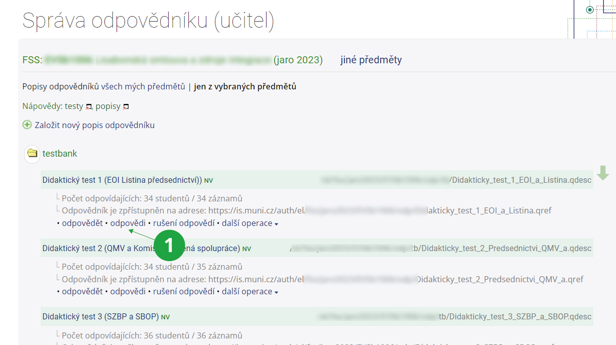 1 U každého odpovědníku si lze zobrazit odpovědi studentů.