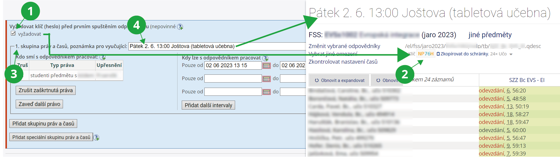 Název skupiny práv a časů – Pole „poznámka pro vyučující“ v popisu odpovědníku lze využít pro krátké a výstižné pojmenování skupiny, které dozoru testu usnadní orientaci, zejména pokud je skupin nebo odpovědníků více.