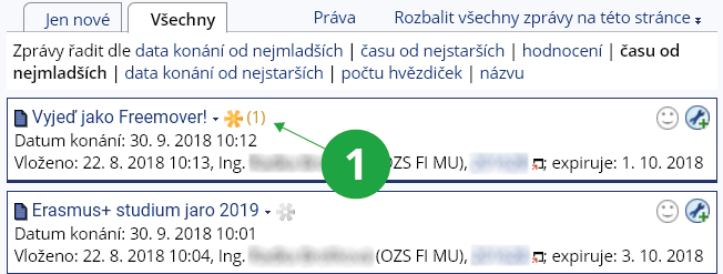 1 Označení zprávy na Vývěsce hvězdičkou.