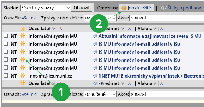 - Zprávy si můžete označit hvězdičkou vedle jména odesílatele. Takto označené zprávy si pak můžete zobrazit pomocí volby „Jen důležité“.