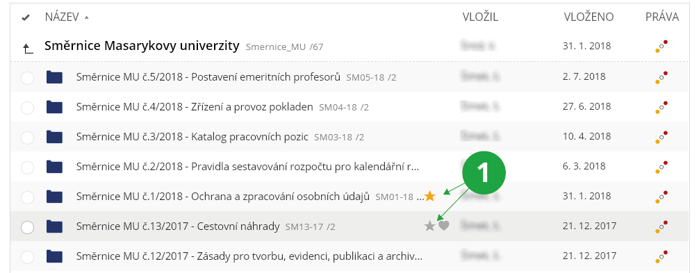 Všechny soubory, které si uživatel označil hvězdičkou, lze najít cestou1Po najetí myši na řádek se souborem je možné jej označit hvězdičkou.