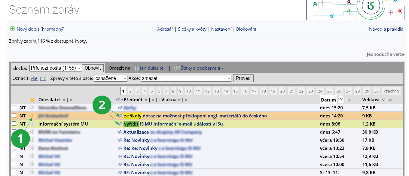 - Uživatel dopis dosud neviděl. V seznamu zpráv je zvýrazněna tučným písmem.