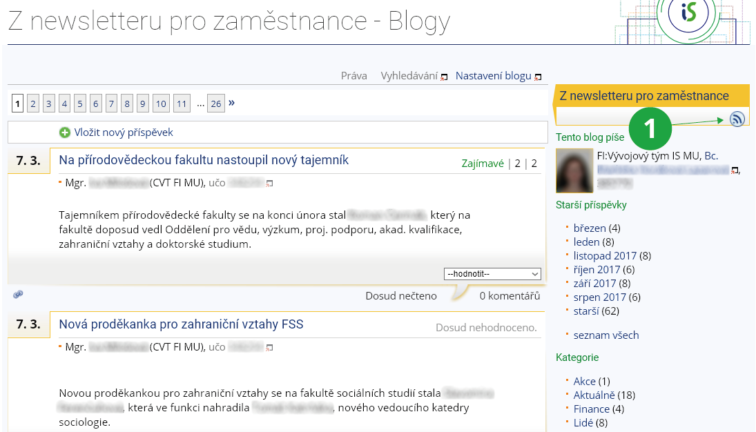 Prostřednictvím RSS můžete také odebírat nové příspěvky z Blogů. Odebírat můžete jak příspěvky (včetně komentářů) z celého blogu, tak jen komentáře z konkrétního příspěvku.