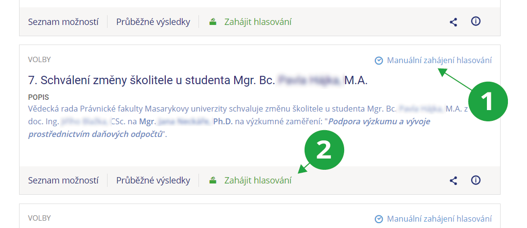 1 E-volba s nastavením možnosti manuálního spuštění hlasování.