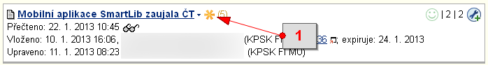 - 7.Kde najdu zprávy, ke kterým se chci později ještě vrátit?Přečtené zprávy, ke kterým se chcete později vracet, lze označit hvězdičkou. Ty se pak vypisují vInformační systém Vývěska Zprávy s hvězdičkouKliknutím na šedou hvězdičku u názvu zprávy zprávu přidáte do seznamu na titulní stranu Vývěsky. Hvězdička změní barvu na oranžovou.