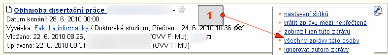 [1] volba pro zobrazení všech zpráv vybrané osoby Zrušené zprávy jsou šedé (nevýrazné).[1] zrušené zprávy Osoby s právem spravovat danou sekci mají výjimečně možnost ponechat zprávu trvalého charakteru na Vývěsce bez zadání data expirace. Tato zpráva pak na Vývěsce zůstává po neomezenou dobu.