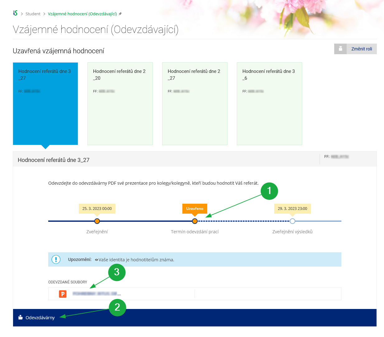 Kromě toho můžete do odevzdáváren napojených na vzájemné hodnocení vkládat soubory také klasicky přes1 Termín odevzdání souborů