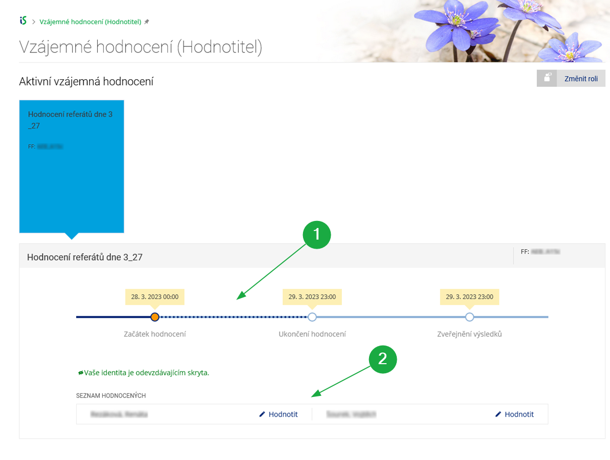 Vyučující předmětu znají identitu odevzdávajících a hodnotitelů vždy.1 Informace o (ne)skrytí identity