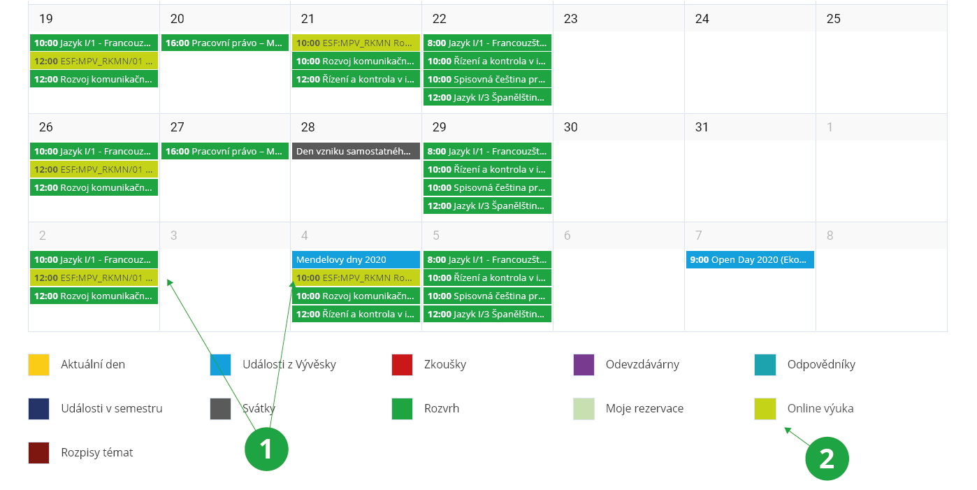 - 1.Kde uvidím, jestli je pro mne naplánová online výuka?Pokud je pro studenta naplánované online setkání v některém z videokonferenčních programů a vyučující tuto informaci zadal do IS UR, bude naplánovaná událost vidět v kalendáři lidí, kterých se týká: