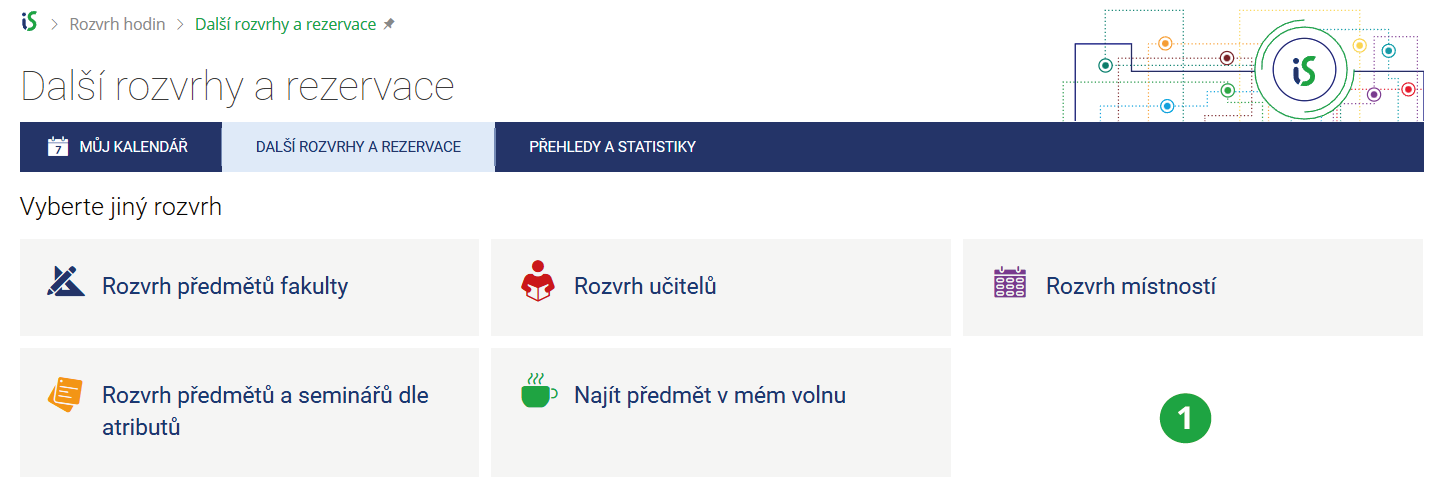 - 1.Kde najdu můj rozvrh?Svůj rozvrh najdete přesInformační systém (Kalendář) Můj rozvrhPokud si chcete zobrazit jiný typ rozvrhu, zvolteInformační systém Rozvrh Další rozvrhy a rezervace