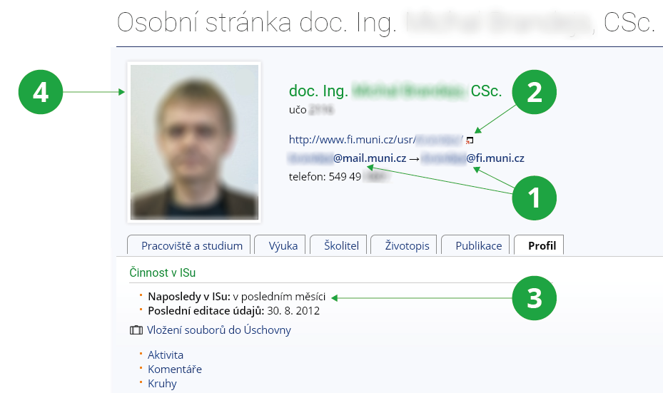 czInformační systém LidéTam najdete „Osobní stránku“ uživatele. V kartě „Profil“ je mimo jiné uveden údaj o jeho posledním přístupu do IS UR, z čehož lze usoudit, zda má smysl s ním e-mailem komunikovat (např. u vyučujícího – externisty). Obecné rady k provozu IS UR na škole vám může poskytnout osoba uvedená na https://uradovna.ismu.cz/spravci/.1 Kontaktní e-mailové adresy.