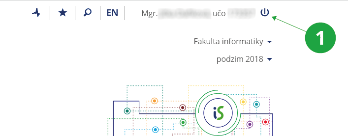 - Chcete-li práci se systémem ukončit, klikněte na ikonku „Odhlásit“ v pravém horním rohu okna.