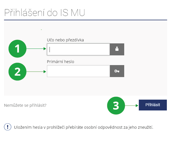 - Neznáte-li svoje primární heslo, nové vám vytvoří kontaktní osoba uvedená na https://uradovna.ismu.cz/spravci/.