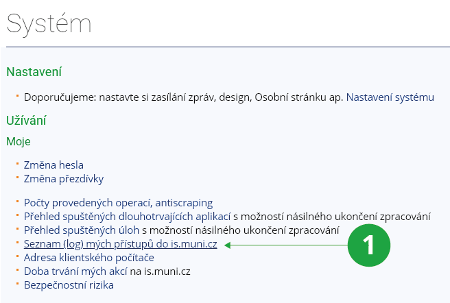 Informační systém Systém Změna heslaNevolte triviální hesla. Pokud někdo zneužije IS UR pod vaší identitou z důvodu nízké bezpečnosti, jste za to spoluzodpovědní. Pokud máte podezření, že vaše heslo bylo zneužito, zkontrolujte, odkud a kdy si systém myslí, že jste byli naposledy připojeni:Informační systém Systém Seznam (log) mých přístupů do uradovna.ismu.czNesouhlasí-li údaj, kontaktuje ihned správce. Pro přístup k počítačům v počítačových učebnách školy budete potřebovat sekundární heslo, které jste pravděpodobně obdrželi společně s heslem k IS UR, nebo si jej nastavte (lze i ze studovny). Sekundární heslo si můžete změnit přes:1 Kontrola posledních přihlášení.