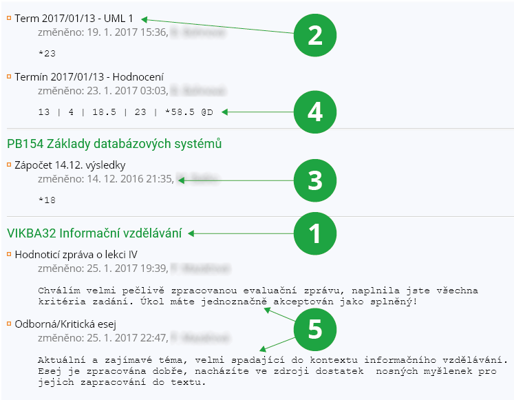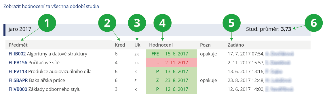 4 Získaná známka a datum zadání hodnocení.