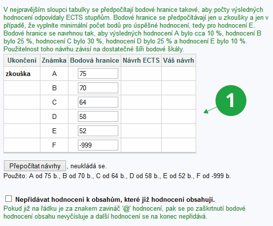 Bloky také podporují průběžné hodnocení v semestru – bodování. Jsou-li obsahem bloků čísla opatřená hvězdičkou (např. *23, *-1, *5.4), chápou je