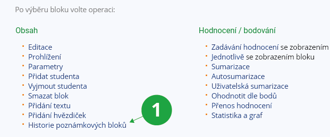 Zadávání hodnocení se zobrazením bloku je alternativní aplikací v sekci Poznámkové bloky v Záznamníku učitele, jejímž prostřednictvím si můžete pro svoji