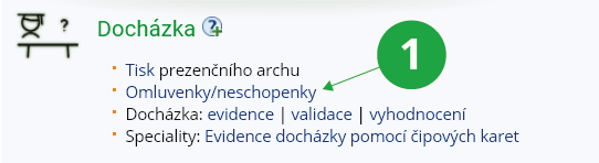 Pokud to nastavení zkušebního termínu umožňuje, mohou se studenti z termínu odhlásit i těsně před zkouškou. Než tedy studentovi zadáte neúspěšné hodnocení, ujistěte se, že byl na termín opravdu přihlášen. Dbejte na to, abyste měli ke konci zkouškového období vyplněn seznam na 100 %. Studenty, kteří ke zkoušce neomluveně nepřišli, označte známkou „-“ (minus). Známka se jim započítává jako neúspěšné ukončení a mají využitý zkušební termín. Známky slouží pro výpočet studijního průměru a ten pro různá sledovaná pořadí a pro hodnocení, jak jsou plněny studijní podmínky. Evidujte proto spravedlivě všem studentům termíny, kdy byli neúspěšní nebo se nedostavili.1 Kontrola omluvenek, neschopenek studentů předmětu.