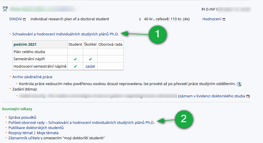 - Informační systém Školitel Schvalování a hodnocení individuálních studijních plánů Ph.D.