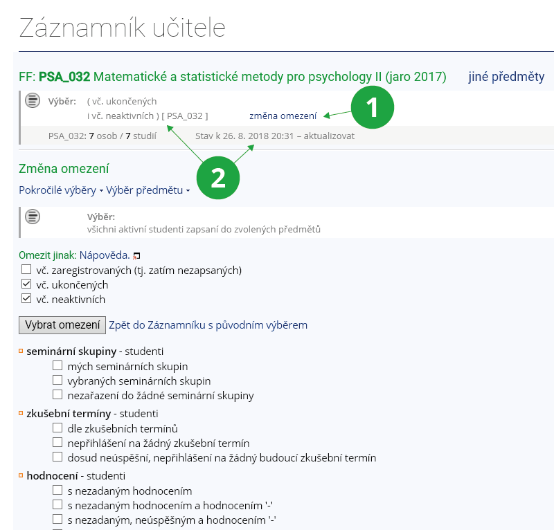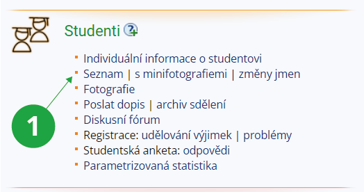 1 Volba pro výběr/změnu omezení seznamu studentů.