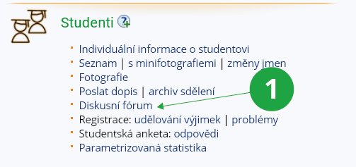 Diskusní fórum umožňuje komunikaci mezi studenty v rámci předmětu, příp. i s vyučujícím.1 Diskusní fórum.