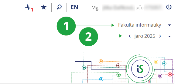 - Téměř každá studijní stránka je nahoře opatřena identifikací (názvem) fakulty a období (semestru).