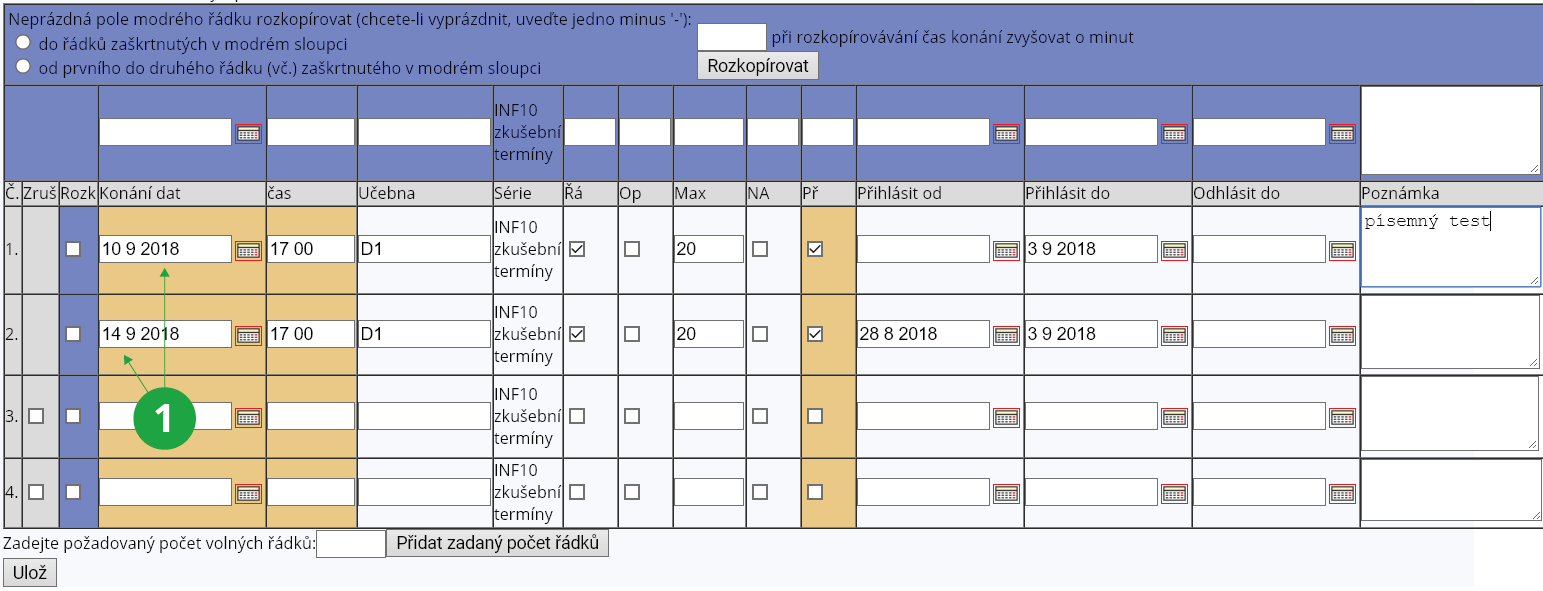 - na termíny této série se smí přihlásit pouze studenti zapsaní do daného semestru: semestr(2)