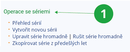 Vytvořené série předmětu můžete dále upravovat, kopírovat z předešlých let, případně rušit přes odkazy na:1 Zadání parametrů série.