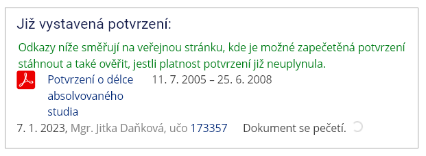 V IS UR se uživatelé setkají například s elektronickým potvrzení o studiu, které je podepsané elektronickým podpisem.